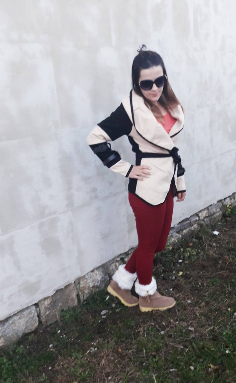 I really like coats, jackets and coats, and that are worn during the autumn - spring but this time I could not resist one without - black jacket. Sizes M, is proportional to our size and the same material is not something overly warm. As I said, it's more of a transitional period. A quality is supple and is decorated with belts on the sleeves. It has a black belt of the same material and thus be tied around the waist. I love this combination of colors and can be worn with a lot of things. It's really beautiful, and I was really happy when we arrived.